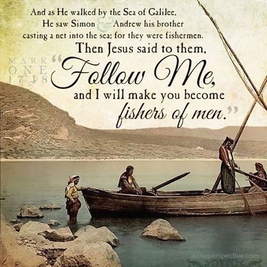 The phrase originates from the Gospels where Jesus calls his first disciples, who were fishermen, to follow him and become "fishers of men".